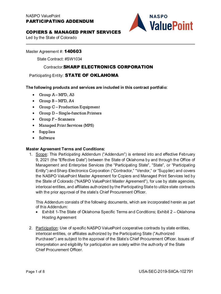 Get the free NASPO ValuePoint PARTICIPATING ADDENDUM STATE OF COPIERS AND MANAGED ...