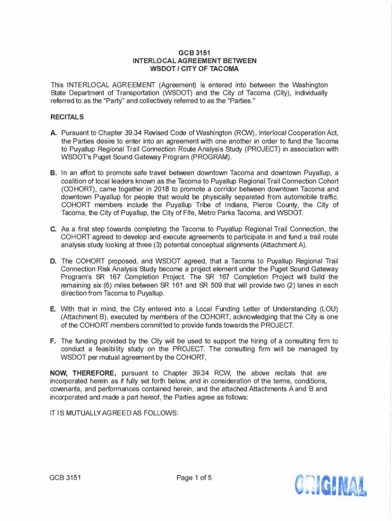 Get the free gcb 3151 - interlocal agreement between - wsdot i city of tacoma - cms cityoftacoma