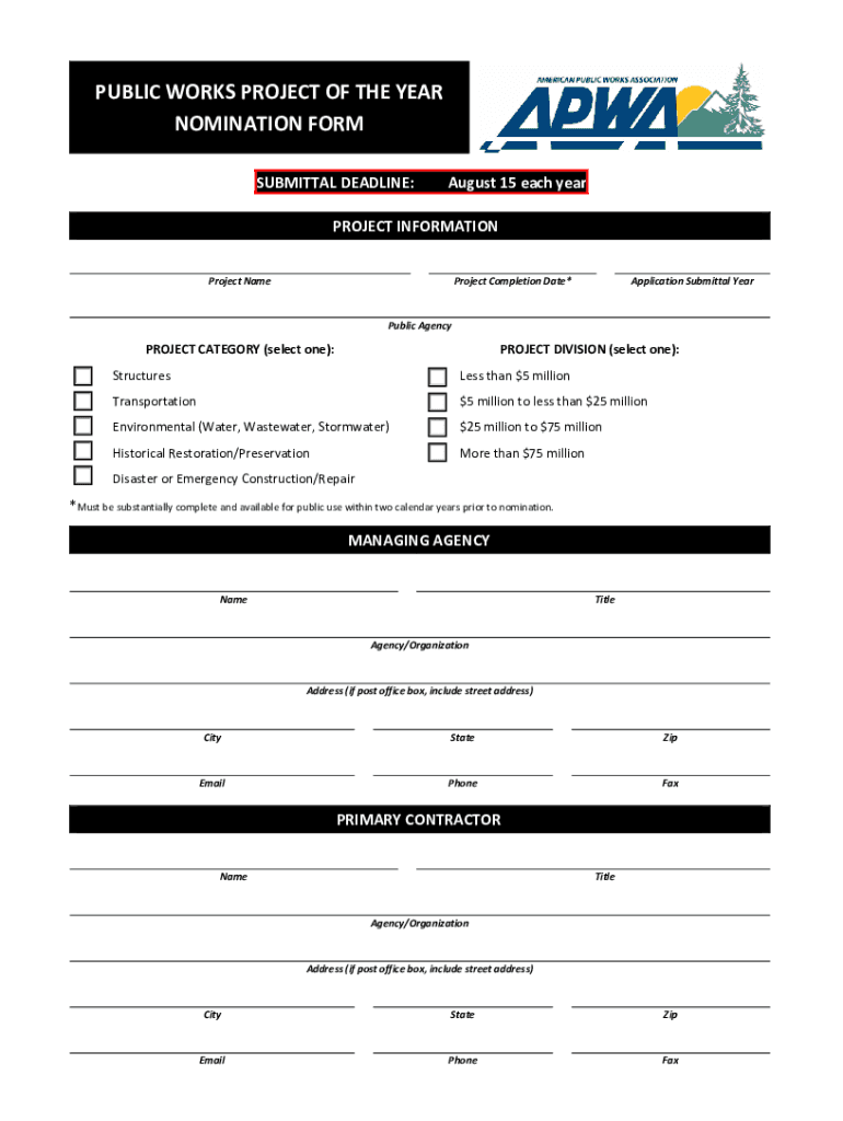 SUBMITTAL DEADLINE:August 15 each overprotect INFORMATION