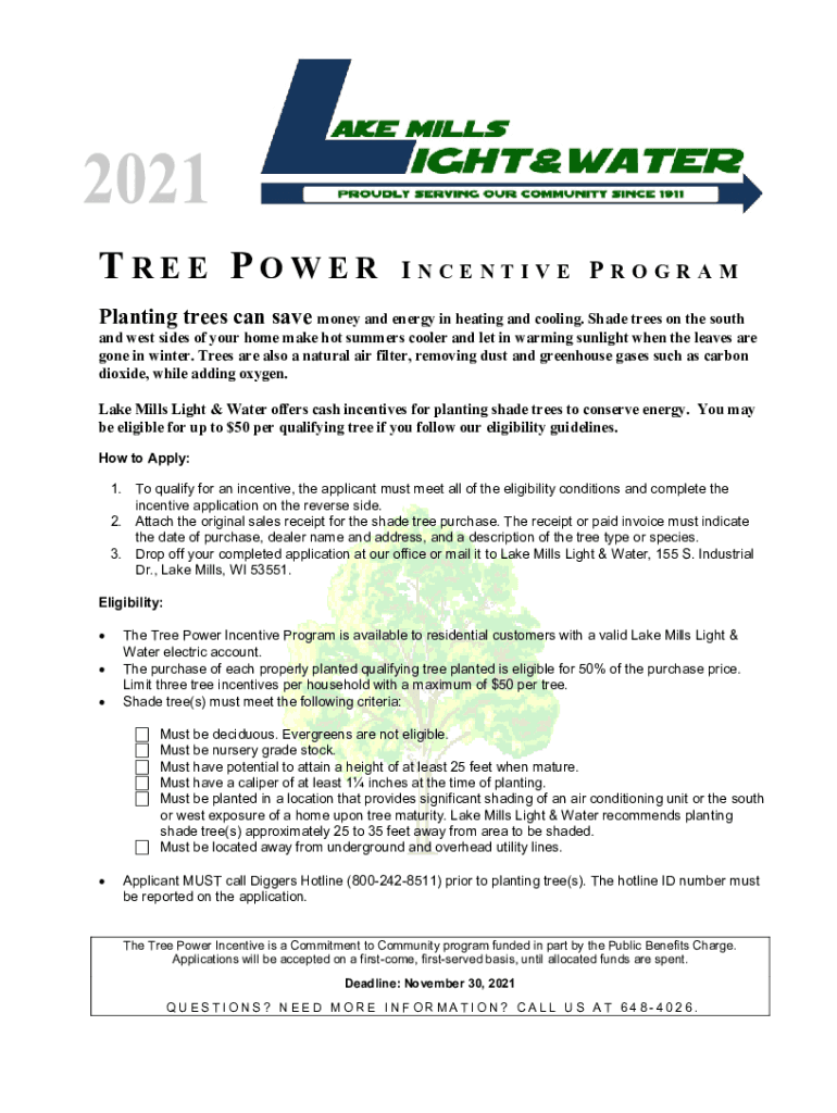 TREE POWERINCENTIVE PROGRAMPlanting trees can save money and energy in heating and cooling. Shade trees on the south and west sides of your home make hot summers cooler and let in warming sunlight
