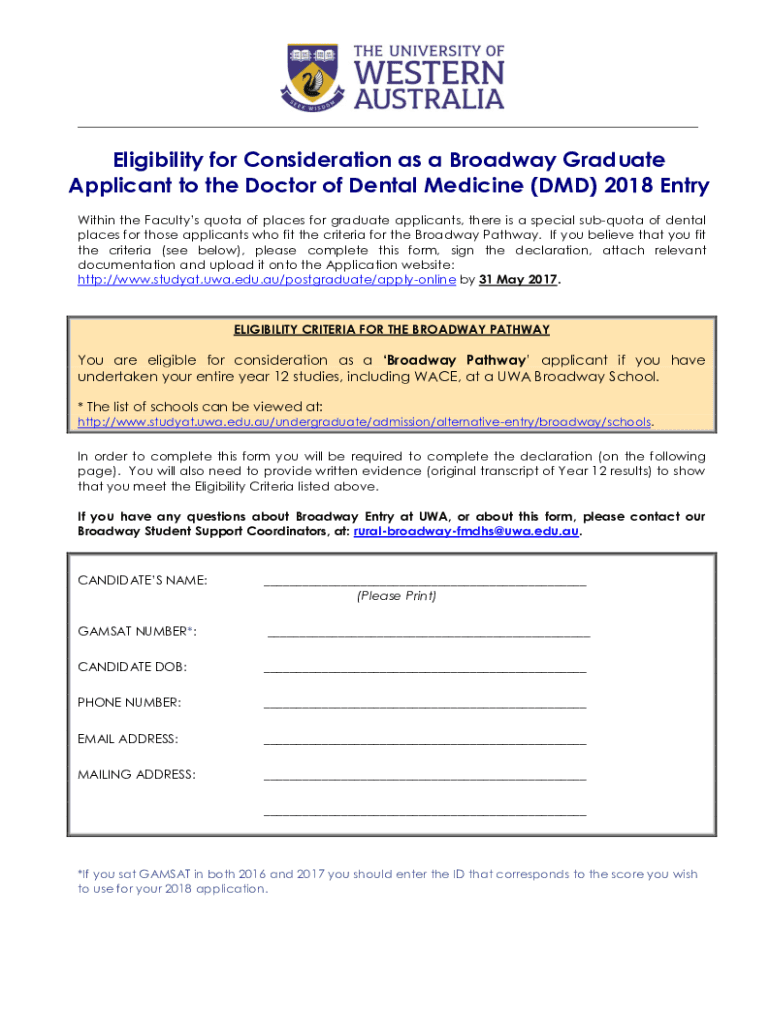 Get the free Eligibility for Consideration as a Broadway Graduate Applicant ...