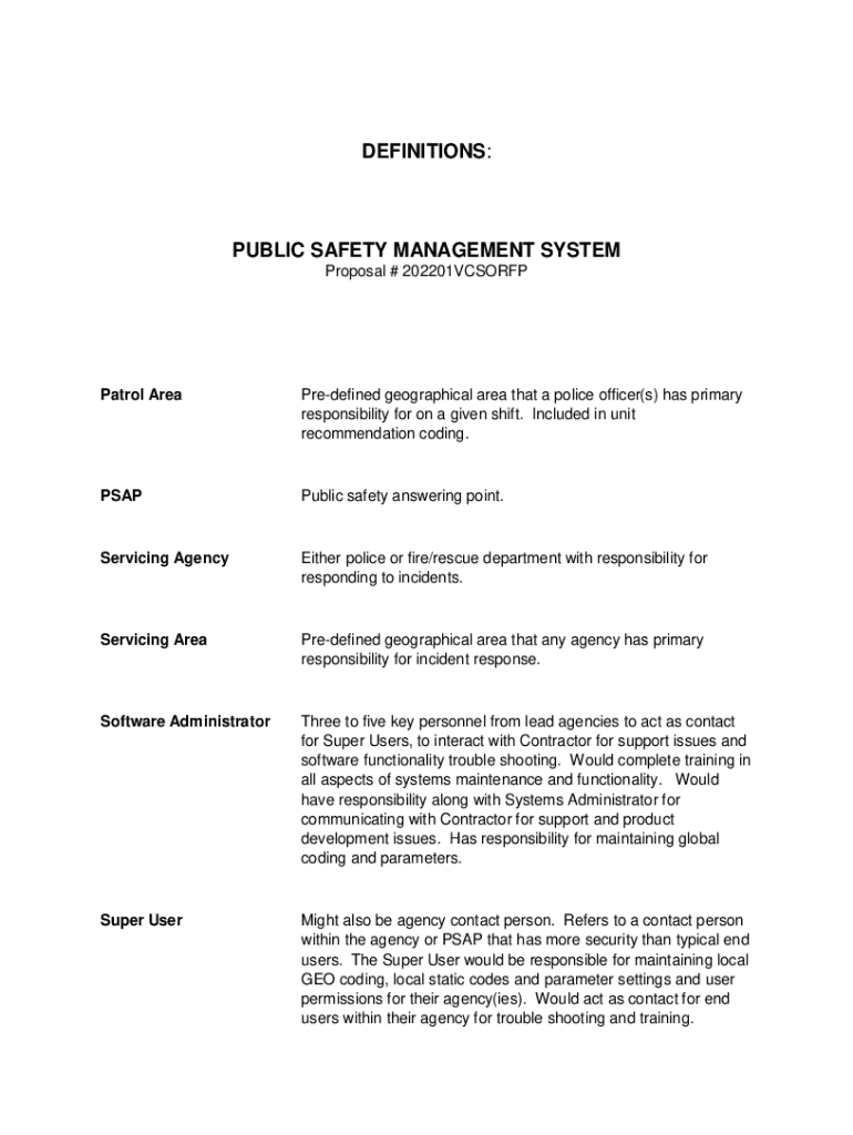 DEFINITIONS:PUBLIC SAFETY MANAGEMENT SYSTEM