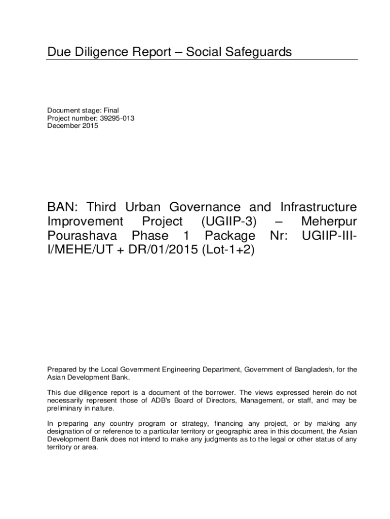 Get the free Due Diligence Report Social Safeguards BAN: Third Urban ...