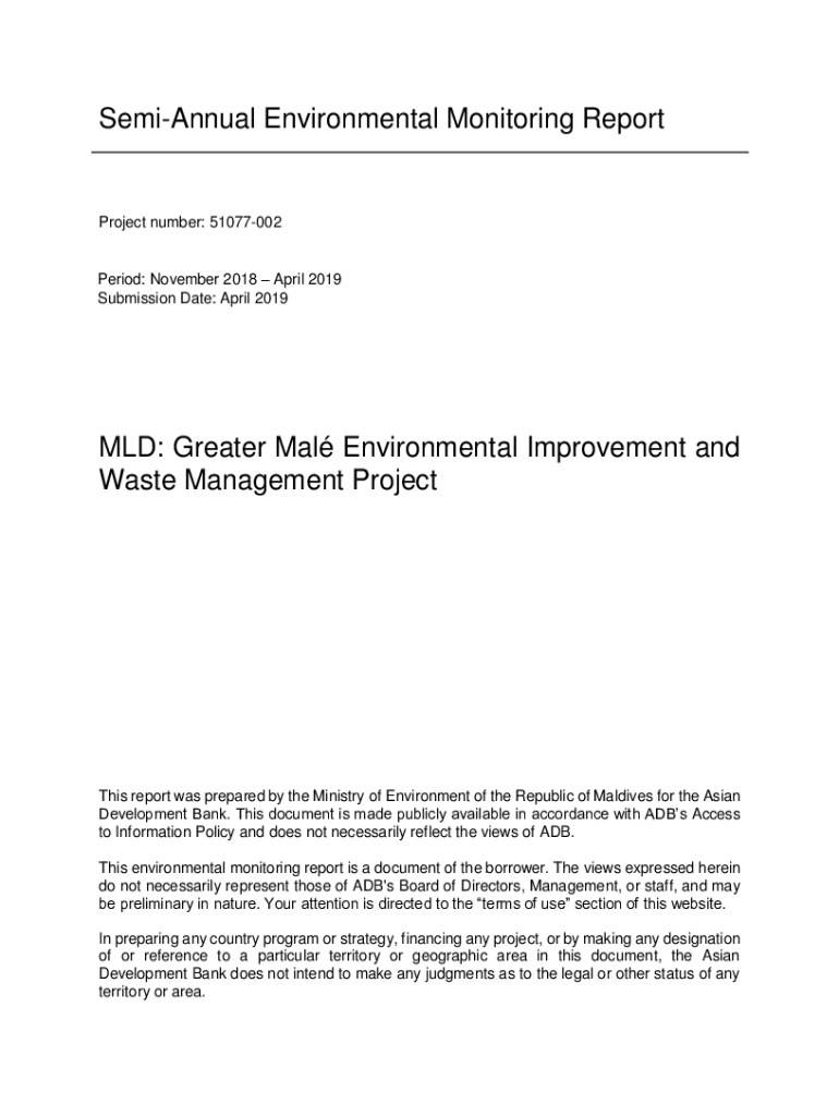 Semiannual Environmental Monitoring ReportProject number: 51077002 Period: November 2018 April 2019 Submission Date: April 2019MLD: Greater MAL Environmental Improvement and Waste Management Projects