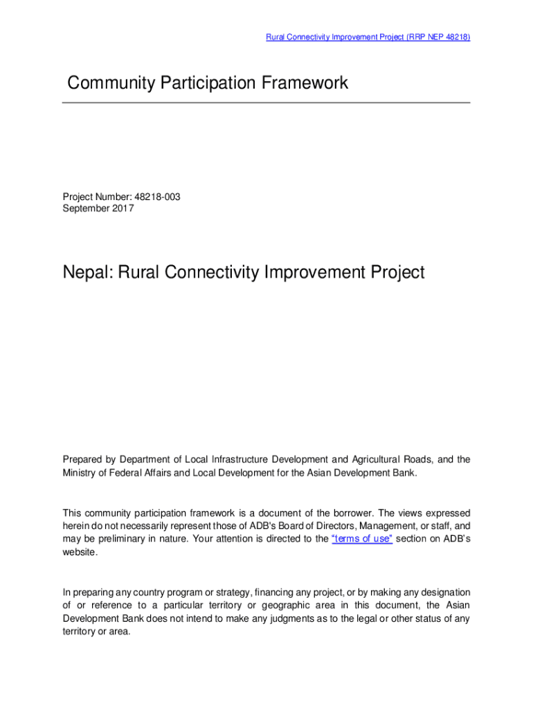 Rural Connectivity Improvement Project (RAP NEP 48218)Community Participation FrameworkProject Number: 48218003 September 2017Nepal: Rural Connectivity Improvement ProjectPrepared by Department of
