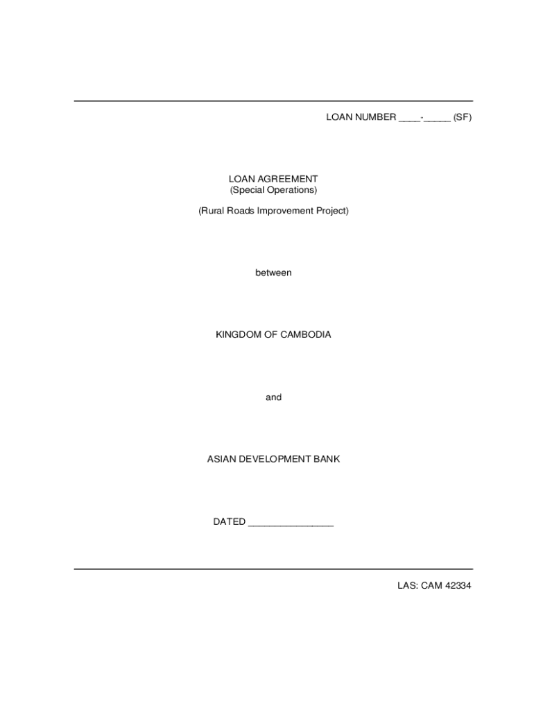 LOAN NUMBER ______ (SF)LOAN AGREEMENT (Special Operations) (Rural Roads Improvement Project)betweenKINGDOM OF CAMBODIAandASIAN DEVELOPMENT BACKDATED ___LAS: CAM 42334LOAN AGREEMENT (Special Operations)LOAN