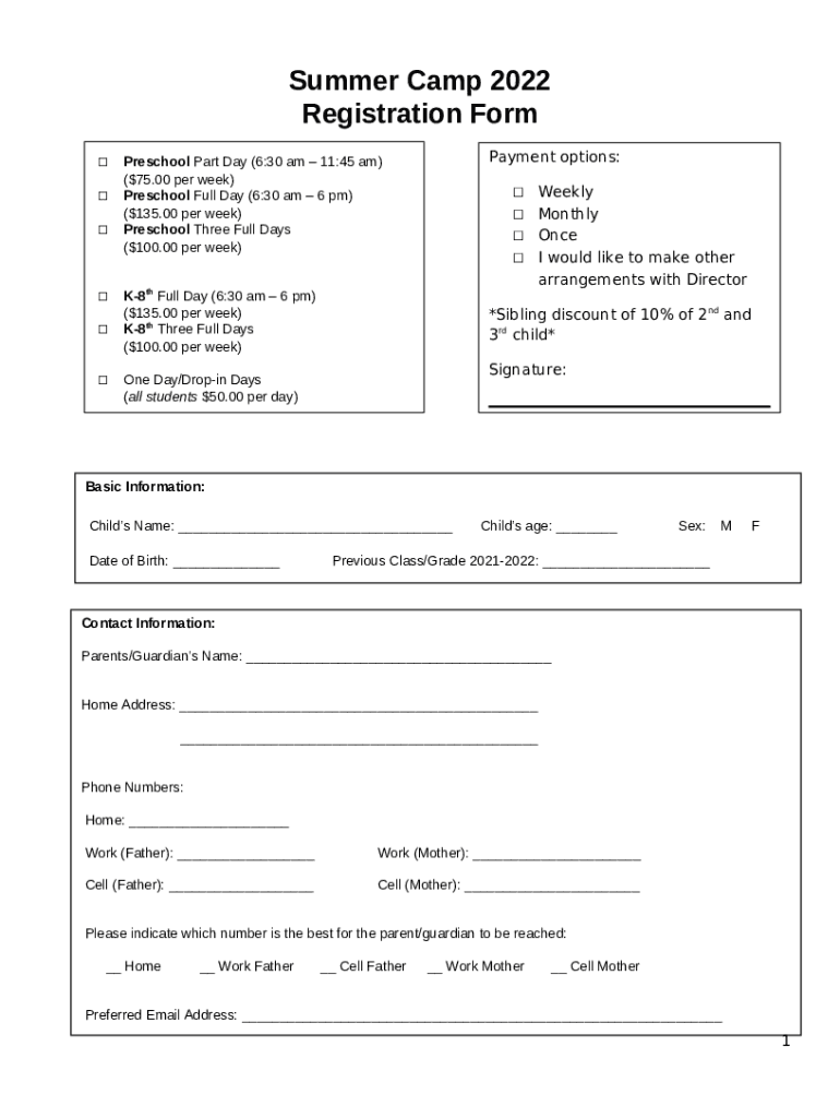 The Register for Summer CampCamp Tecumseh YMCASummer Campsdpr - Washington, D.CSummer Campsdpr - Washington, D.CRegister for Summer CampCamp Tecumseh YMCA is a writable document required to be submitted to the required address in order to provide certain info. It needs to be filled-out and signed, which can be done manually, or with a particular software e. g. PDFfiller. This tool lets you complete any PDF or Word document directly from your browser (no software requred), customize it according to your needs and put a legally-binding e-signature. Right away after completion, you can easily send the Register for Summer CampCamp Tecumseh YMCASummer Campsdpr - Washington, D.CSummer Campsdpr - Washington, D.CRegister for Summer CampCamp Tecumseh YMCA to the relevant person, or multiple individuals via email or fax. The blank is printable too due to PDFfiller feature and options proposed for printing out adjustment. In both electronic and physical appearance, your form will have got neat and professional outlook. You may also save it as the template to use it later, so you don't need to create a new blank form over and over. Just amend the ready form.