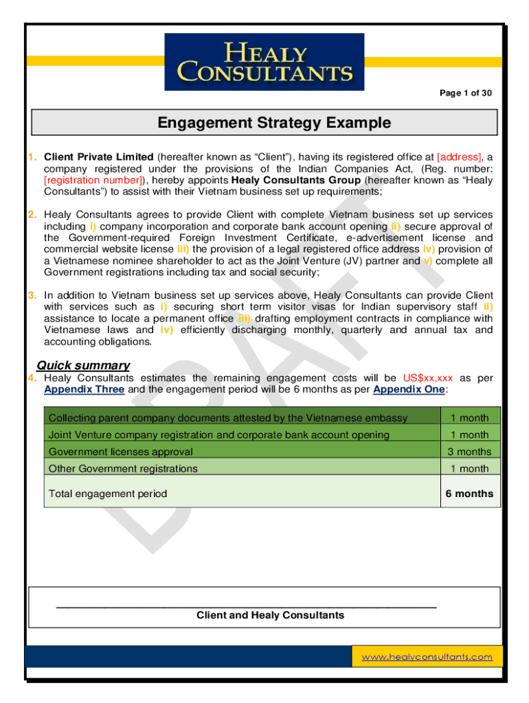 Page 1 of 30Engagement Strategy Example 1. Client Private Limited (hereafter known as Client), having its registered office at [address], a company registered under the provisions of the Indian Companies