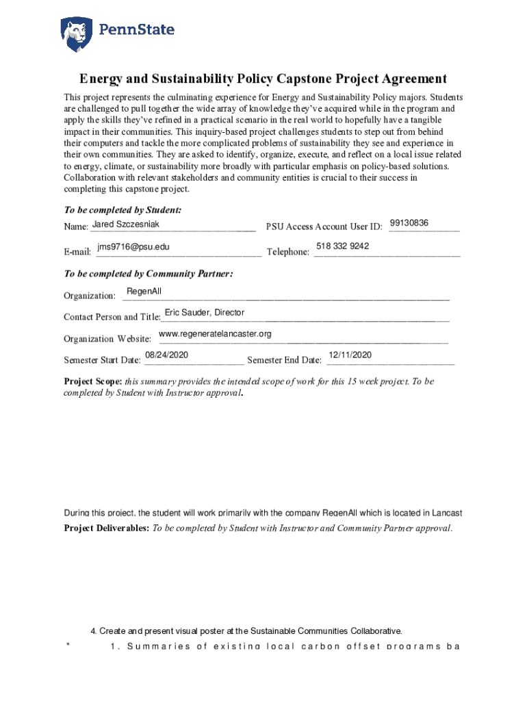 Get the free Energy and Sustainability Policy Capstone Project Agreement