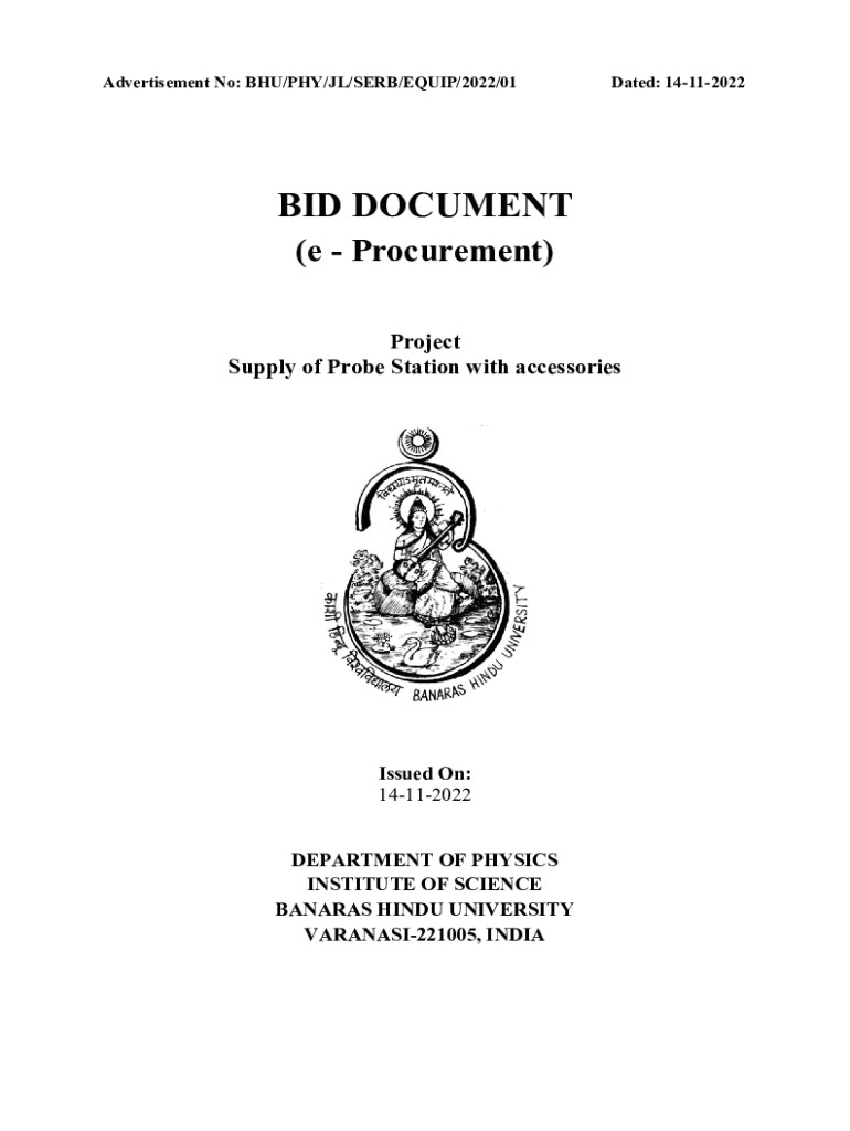 Advertisement No: BHU/PHY/JR/SERB/EQUIP/2022/01Dated: 14112022BID DOCUMENT (e Procurement) Project Supply of Probe Station with accessoriesIssued On: 14112022 DEPARTMENT OF PHYSICS INSTITUTE OF SCIENCE