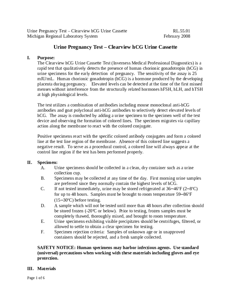 The Urine hCG Level Test: Purpose, Procedure, and RisksHCG Pregnancy Rapid Test Cassette (Urine) - accu-test.comHCG Pregnancy Rapid Test Cassette (Urine) - accu-test.comUrine hCG Level Test: Purpose, Procedure, and Risks is a document you can get completed and signed for certain purpose. Then, it is provided to the relevant addressee in order to provide specific information and data. The completion and signing is possible in hard copy by hand or via an appropriate application like PDFfiller. These applications help to submit any PDF or Word file online. It also lets you customize it for the needs you have and put a legal electronic signature. Once done, the user sends the Urine hCG Level Test: Purpose, Procedure, and RisksHCG Pregnancy Rapid Test Cassette (Urine) - accu-test.comHCG Pregnancy Rapid Test Cassette (Urine) - accu-test.comUrine hCG Level Test: Purpose, Procedure, and Risks to the respective recipient or several recipients by mail and also fax. PDFfiller has a feature and options that make your Word template printable. It has various options for printing out appearance. No matter, how you file a form after filling it out - physically or by email - it will always look neat and firm. To not to create a new writable document from scratch all the time, make the original Word file into a template. After that, you will have a customizable sample.
