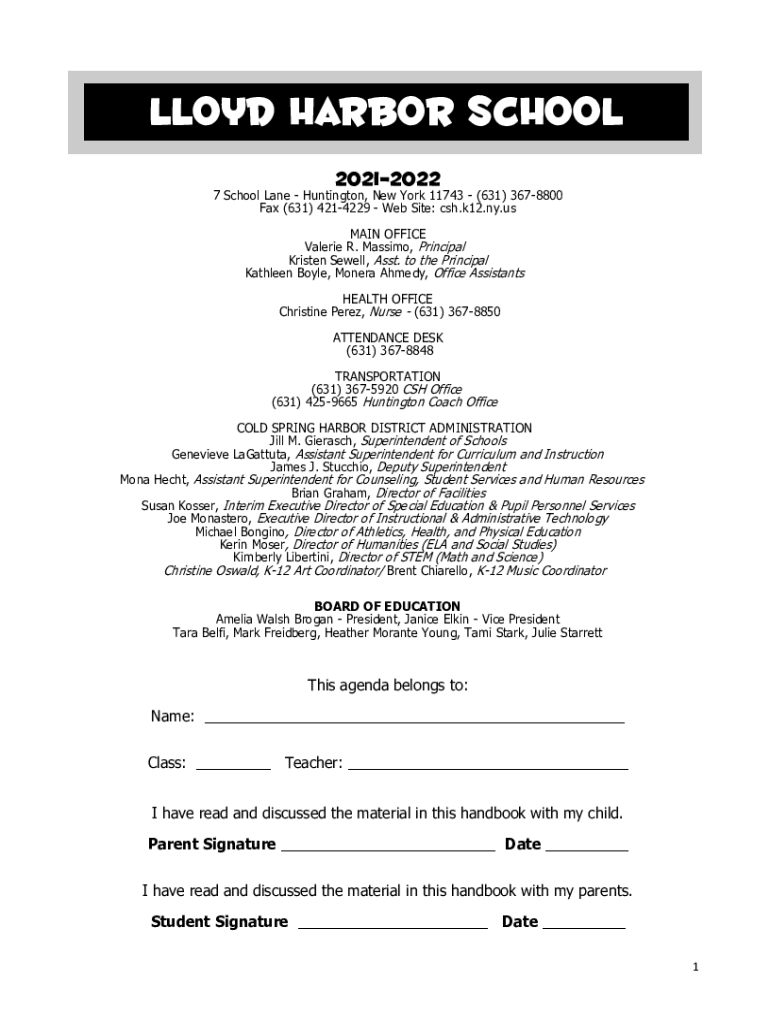 Lloyd Harbor School 202120227 School Lane Huntington, New York 11743 (631) 3678800 Fax (631) 4214229 Website: CSH.k12.NY.us MAIN OFFICE Valerie R. Massimo, Principal Kristen Sewell, Asst. To the Principal