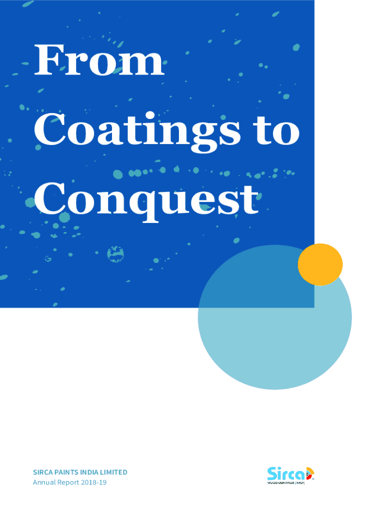 From Coatings to ConquestSIRCA PAINTS INDIA LIMITED Annual Report 201819DONT JUST CREATE A BRAND, CREATE A STORY.40.5%yoy growth in revenue from operations in FY1921.5%yoy growth in EBITDA excluding