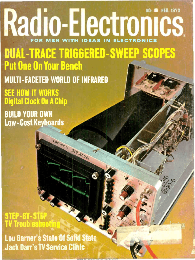 FOR MEN WITH IDEAS IN ELECTRONICSDUALTRACE TRIGGEREDSWEEP SCOPES Put One On Your Bench. MULTIFACETED WORLD OF INFRARED SEE HOW IT WORKSDigital Clock On A Chip BUILD YOUR OWNLowCost Keyboards.americanradiohistory.this