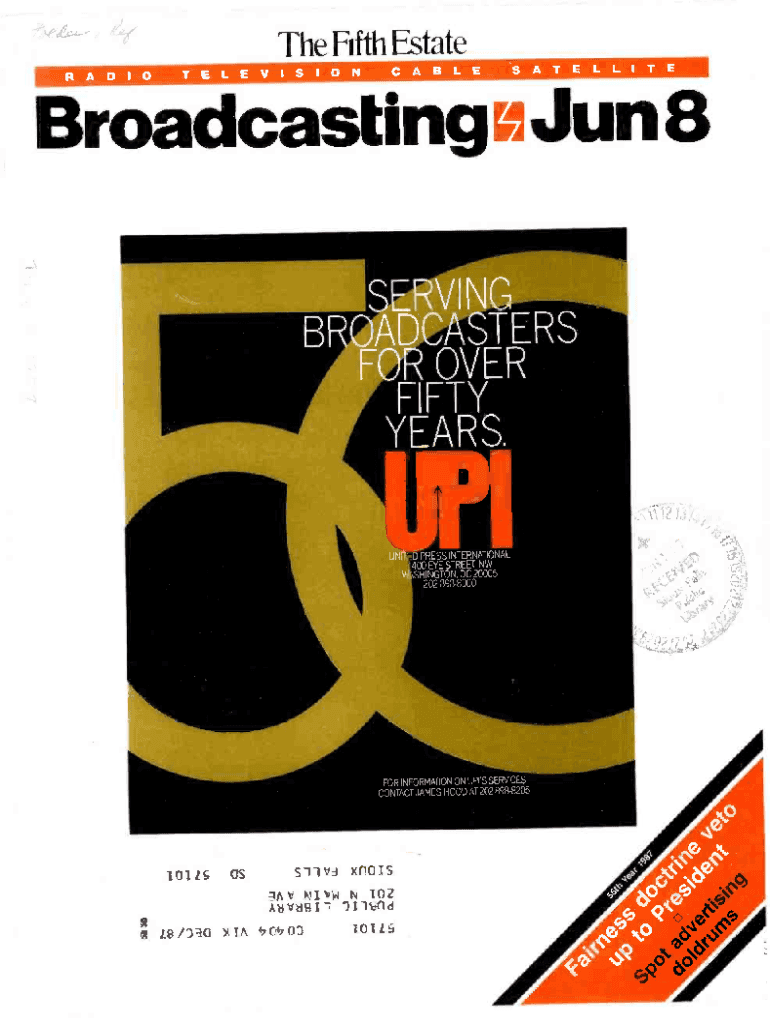 The Fifth Estate RADIO E LE VISINOCAB LESA T E L L I TE Broadcasting Jun 8 CASTE OR O FIFTY YEARS.PRESS INTERNATIONAL400 EYE STREET, NW WASHINGTON,DC20005 202 8988000FOR INFORMATION ON UPI\'S SERVICES