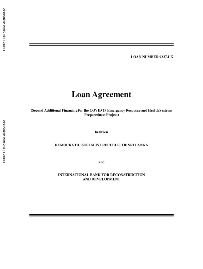 Public Disclosure Authorized Public Disclosure AuthorizedLOAN NUMBER 9237LKLoan AgreementPublic Disclosure AuthorizedPublic Disclosure Authorized(Second Additional Financing for the COVID-19 Emergency