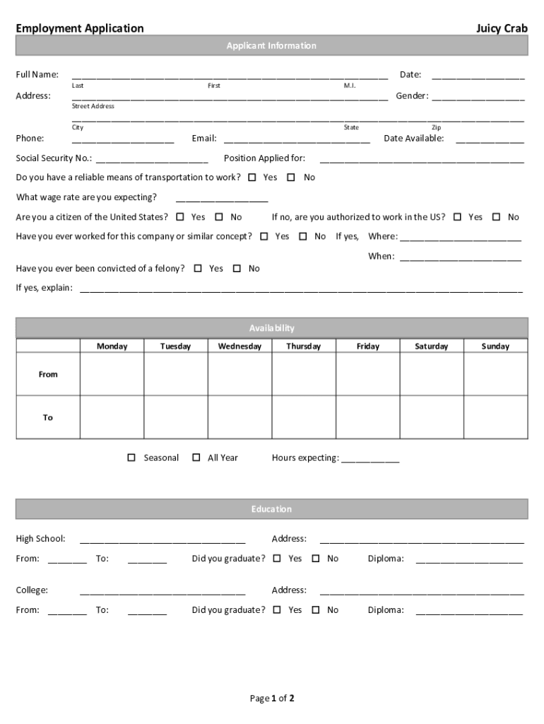 How to fill out juicycrabfayettevillecomimgapplication21employment application juicy crab