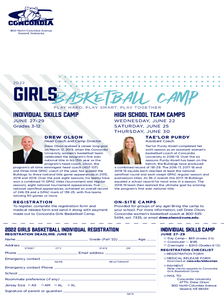 800 North Columbia Avenue Seward, Nebraska2022GirlsBaSketball Camp P L A H A R D, P L A S M A R T, P L A TO G E T H ER individual Skills campaign School Team capsule 2729 Grades 312WEDNESDAY, JUNE