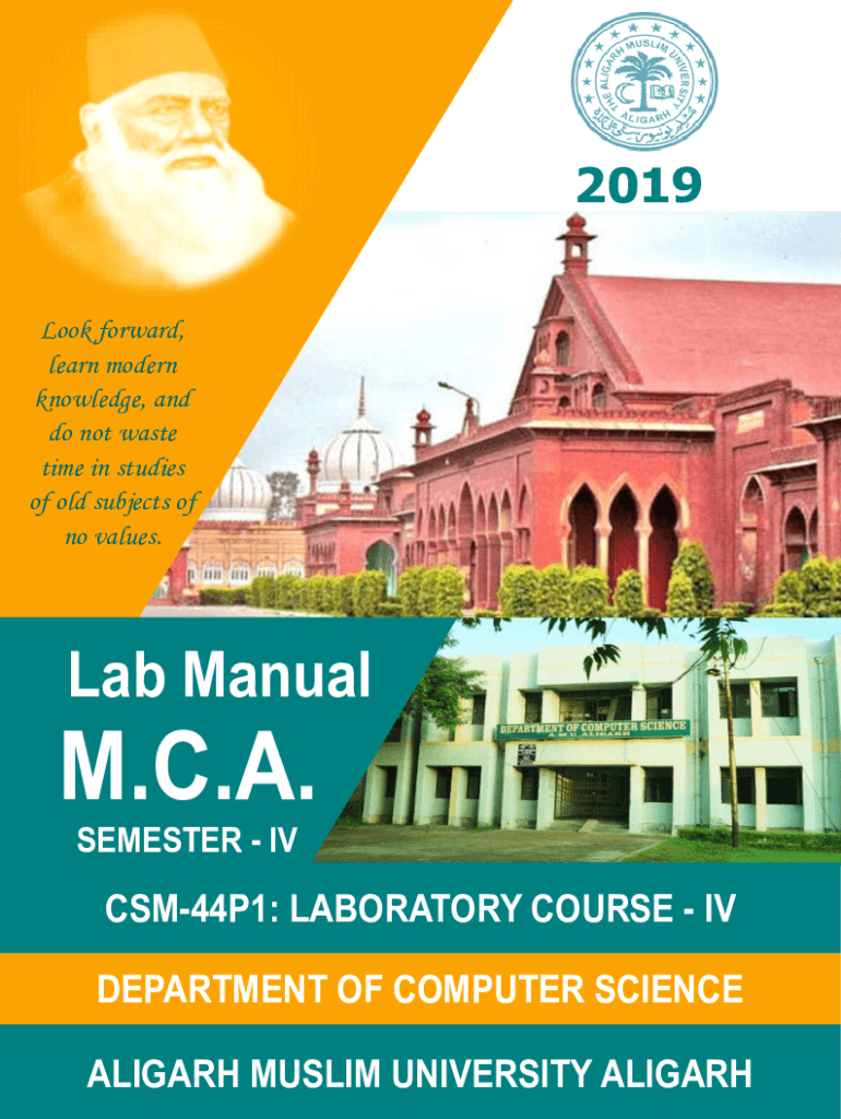 2019 Look forward, learn modern knowledge, and do not waste time in studies of old subjects of no values. Lab Manual. C.A. SEMESTER IVCSM44P1: LABORATORY COURSE IV DEPARTMENT OF COMPUTER SCIENCE ALIGARH