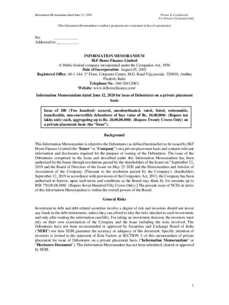 Information Memorandum dated June 12, 2020Private & Confidential For Private Circulation Only(This Information Memorandum is neither a prospectus nor a statement in lieu of a prospectus)No: ___ Addressed