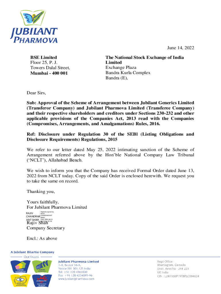 June 14, 2022, BSE Limited Floor 25, P. J. Towers Daley Street, Mumbai 400 001The National Stock Exchange of India Limited Exchange Plaza Sandra Karla Complex Sandra (E), Mumbai 400 051Dear Sirs,