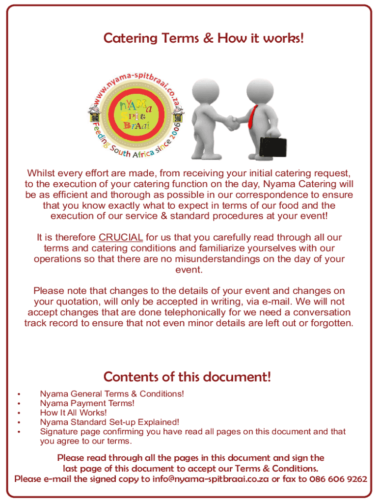 Catering Terms & How it works! Whilst every port are made, from receiving your initial catering request, to the execution of your catering function on the day, Nyasa Catering will be as ancient and