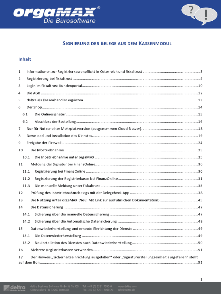 SIGNING HER BELIEVE AUS DEM KASSENMODUL Inhale 1Informationen our Registrierkassenpflicht in stretch UND fiskaltrust ........................................................ 32Registrierung BEI fiskaltrust