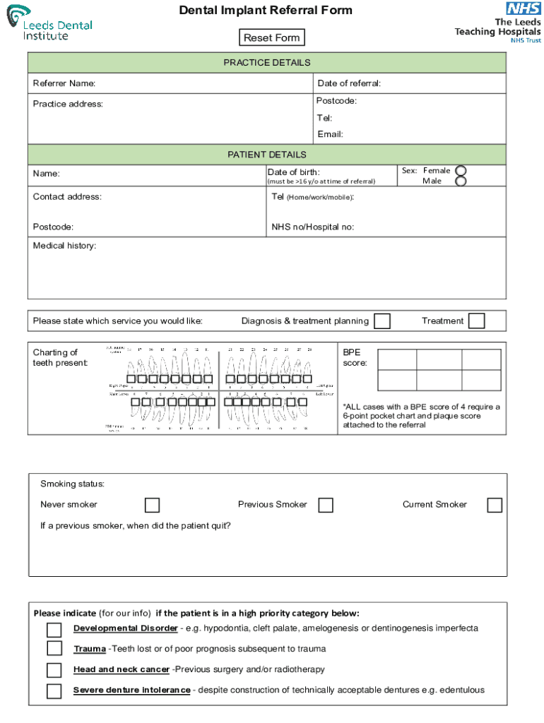 Dentists or dental professionals who are looking to refer a patient for dental implant treatment can use the Treetops Dental implant referral form