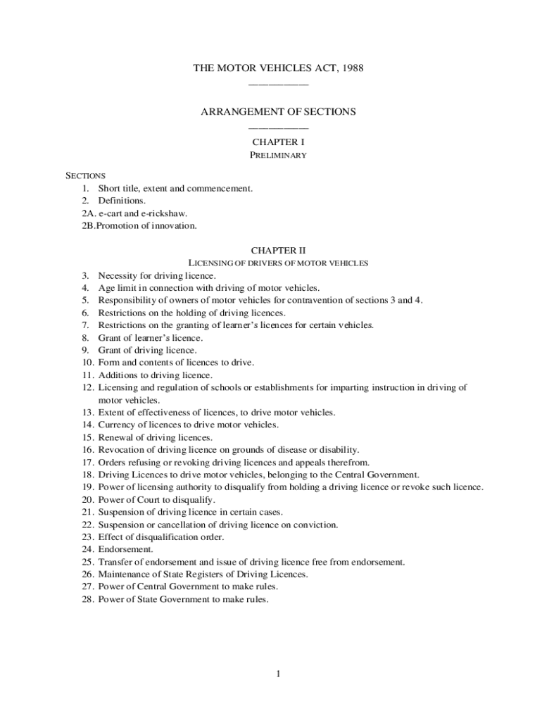 Get the free THE MOTOR VEHICLES ACT, 1988 ARRANGEMENT OF SECTIONS - IndiMOTOR VEHICLE BARE ACTcom...