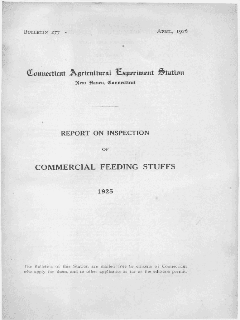 REPORT ON INSPECTIONCOMMERCIAL FEEDING Stuffs u l l e t i l soft his Station an r e-mailed free t o citizens of Connecticut who apply for them, and to other applicants as far as the editions permit.