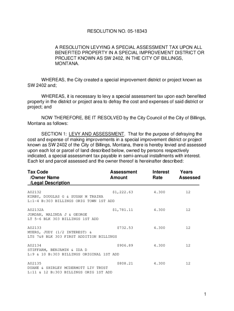 Get the free billingsmt.govDocumentCenterViewA RESOLUTION LEVYING A SPECIAL ASSESSMENT TAX UPON A...