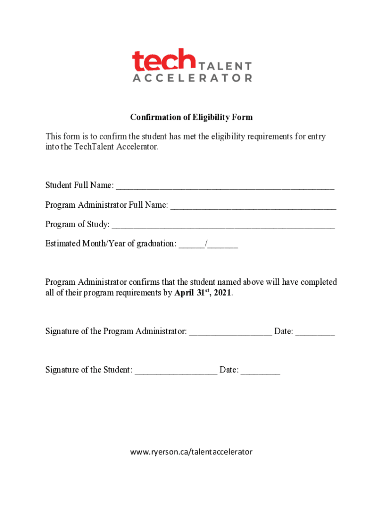 Confirmation of Eligibility Form This form is to confirm the student has met the eligibility requirements for entry into the Testament Accelerator. Student Full Name: ___ Program Administrator Full