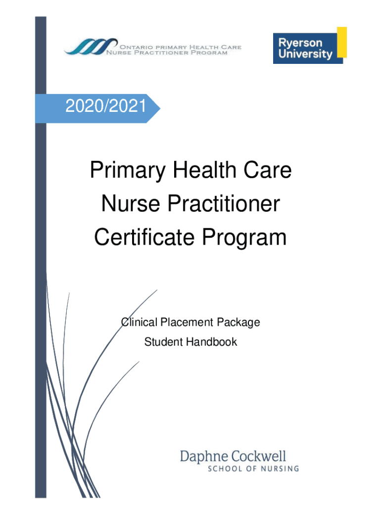 2020/2021Primary Health Care Nurse Practitioner Certificate ProgramClinical Placement Package Student HandbookTable of ContentsIntroduction to the Clinical Placement Package Student Handbook2PHCNP