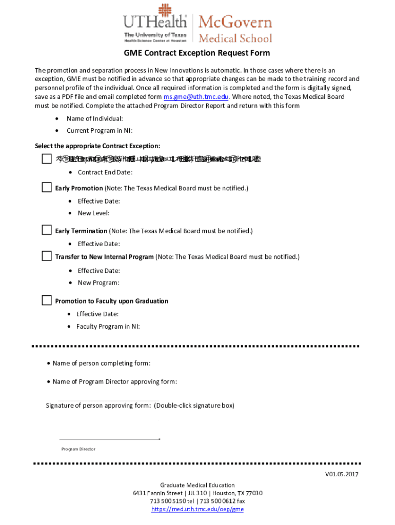 How to fill out meduthedugmewp-contentgme contract exception request?