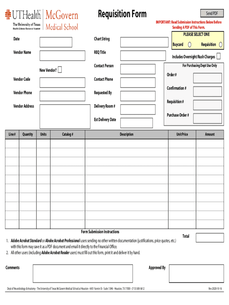 Get the free Requisition Form - McGovern Medical School