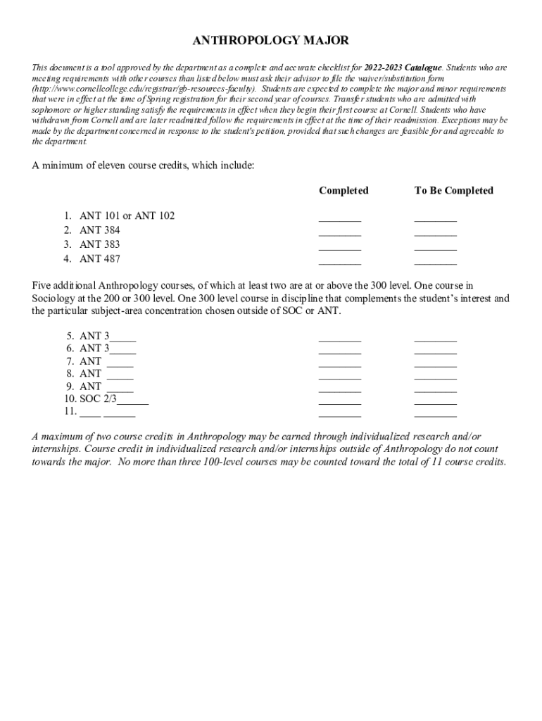 Fill out your anthropology major - cornell online with pdfFiller!