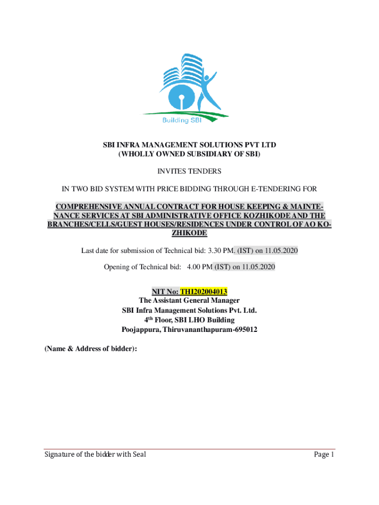 Get the free Signature of the bidder with Seal Page 1 SBI INFRA ...