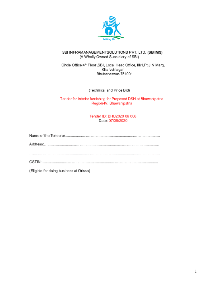 SBI INFRAMANAGEMENTSOLUTIONS PVT. LTD. (SBI IMS) (A Wholly Owned Subsidiary of SBI) Circle Office:4th Floor, SBI, Local Head Office, III/1,Pt. J N Mary, Kharvelnagar, Bhubaneswar751001(Technical and