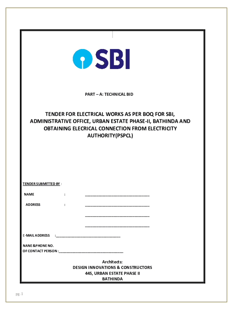 Get the free TENDER FOR ELECTRICAL WORKS AS PER BOQ FOR SBI, ADMINISTRATIVE OFFICE ...