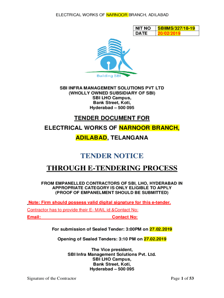 Get the free NIT NO SBIIMS/352/18-19 DATE 19/02/2019 SBI INFRA MANAGEMENT SOLUTIONS ...