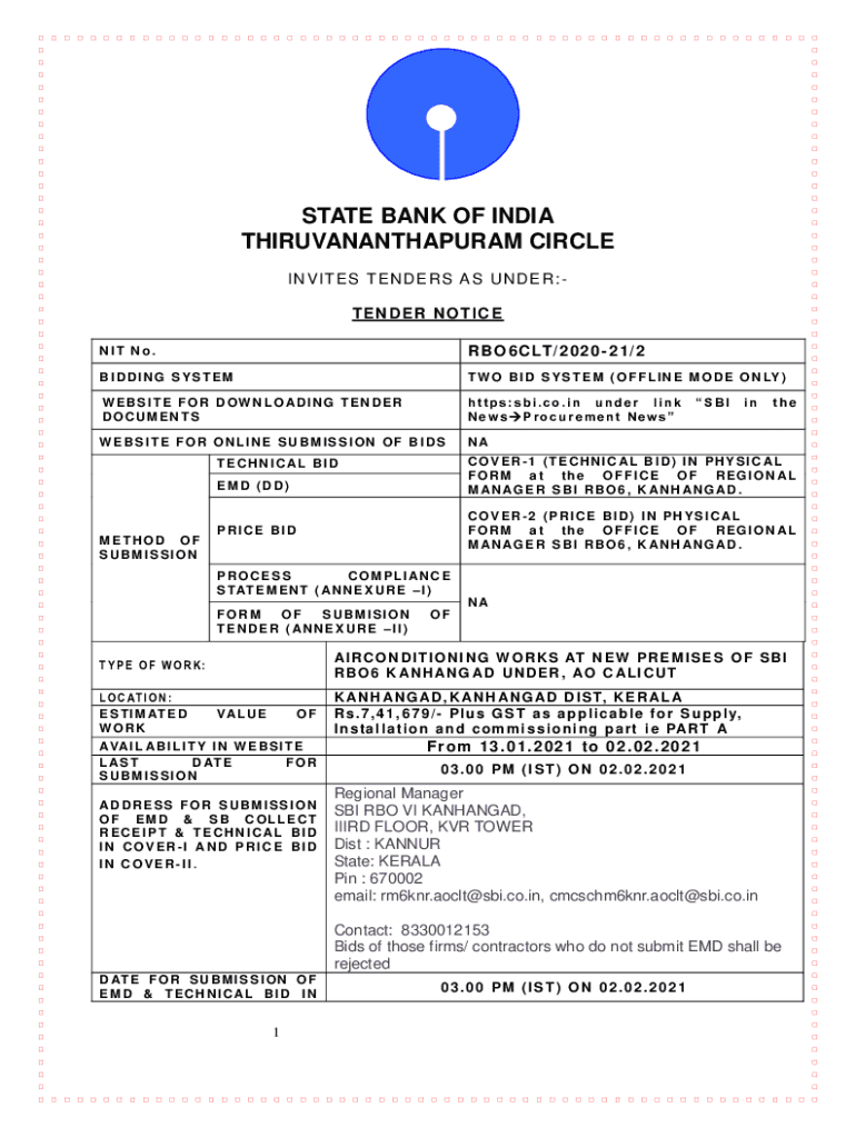 NIT No. R B O 6 C LT/ 2 0 2 0 2 1 / 2BIDDING SYSTEM W O B I D S Y S T E M (O F F L I N E M O D E O N LY)WEBSITE