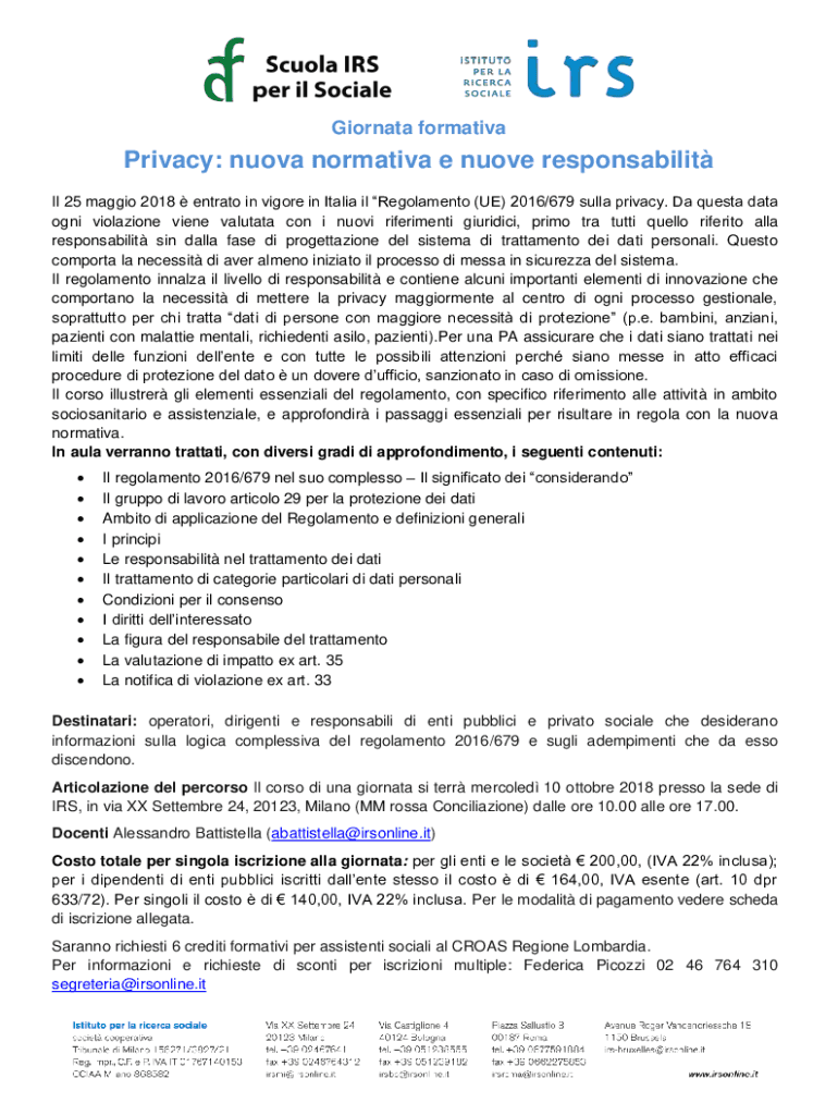 Ornate formativaPrivacy: Nova normative e love responsibility