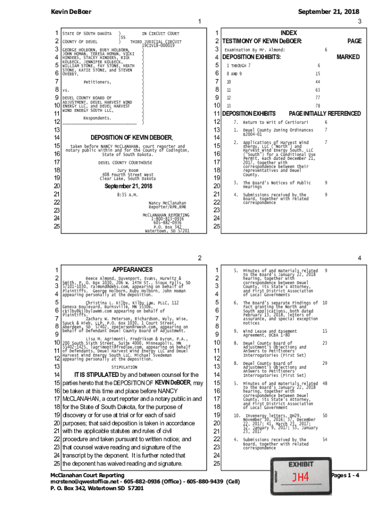 Kevin DeBoerSeptember 21, 2018 31 1 2 3 4 5 6 7 8 9 10 11 12 13 14 15 16 17 18 19 20 21 22 23 24 25STATE OF SOUTH DAKOTA COUNTY OF DUEL) :SS)INDEX 1 PAGE 2 TESTIMONY OF KEVIN Denver: Examination By