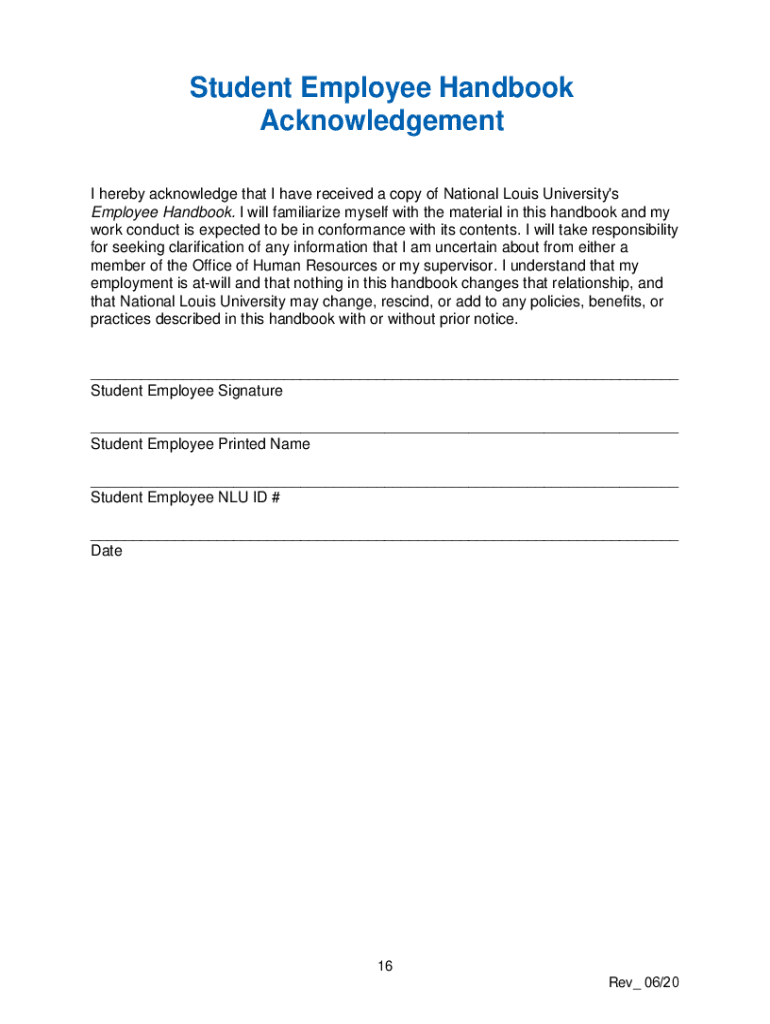 Graduate Assistant (GA) Student Employment Handbook1 Rev_ 06/20Dear National Louis University Student Employee: It is a pleasure to welcome you as a new member of National Louis University Student