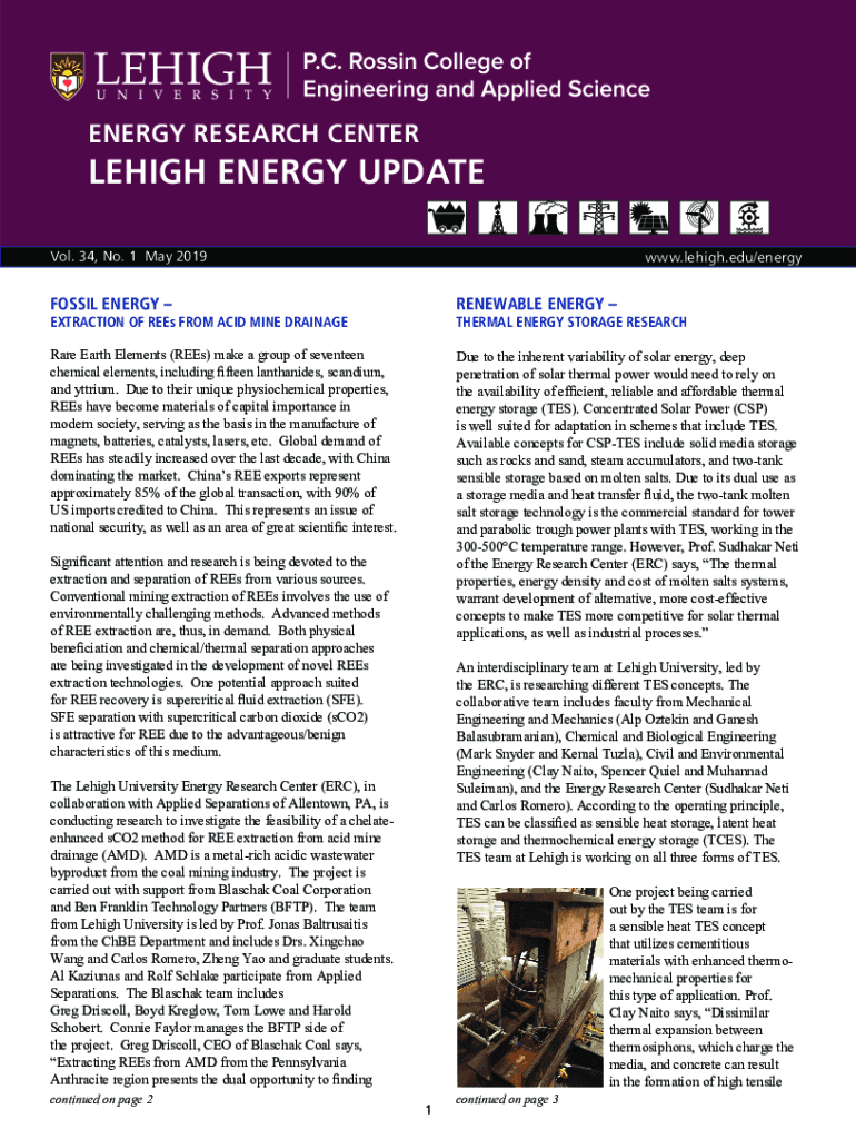 ENERGY RESEARCH CENTERLEHIGH ENERGY UPDATE Vol. 34, No. 1 May 2019www.lehigh.edu/energyFOSSIL ENERGY RENEWABLE ENERGY Rare Earth Elements (Sees) make a group of seventeen chemical elements, including