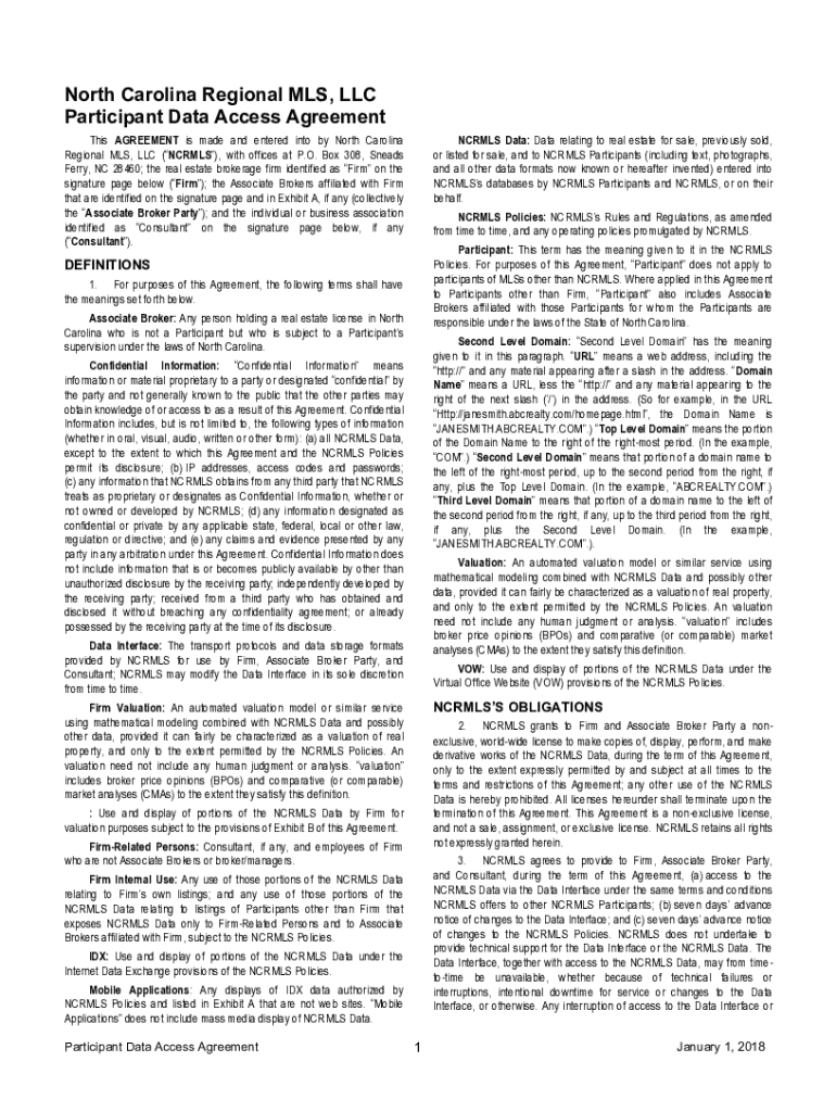 Get the free North Carolina Regional MLS, LLC Participant Data Access Agreement