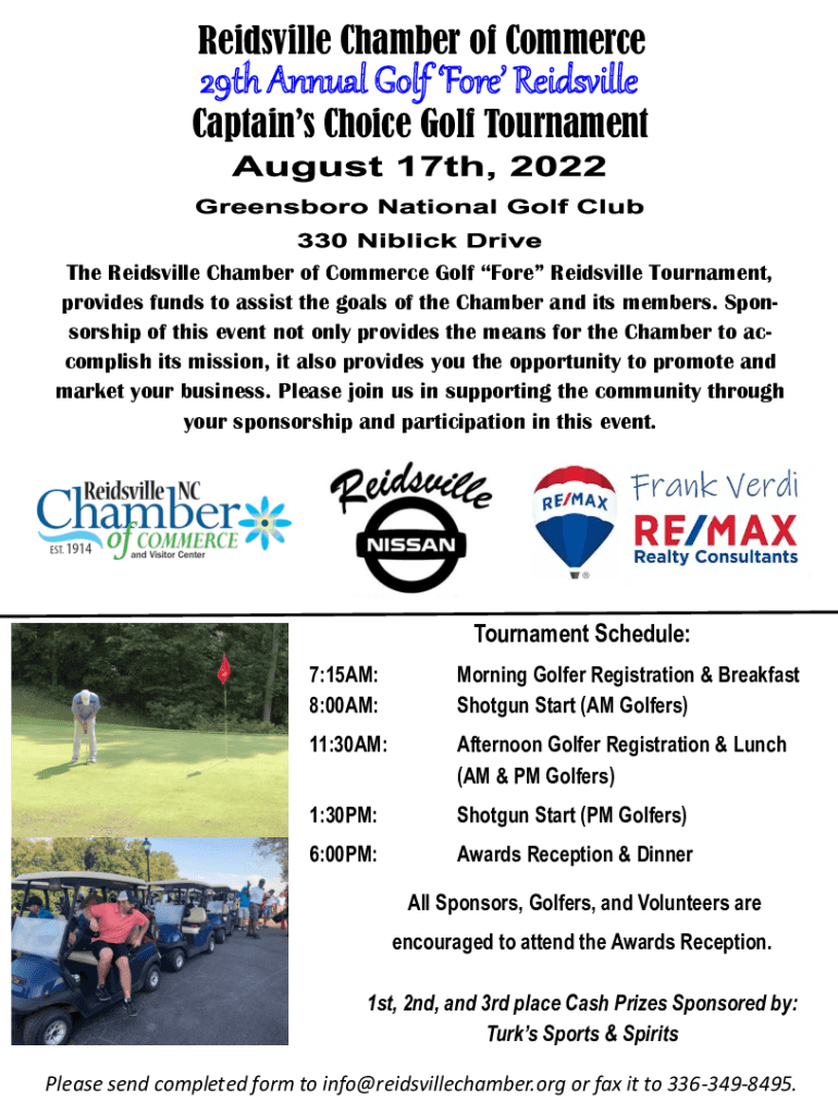 Reidsville Chamber of Commerce29th Annual Golf Fore ReidsvilleCaptains Choice Golf Tournament Reidsville Chamber of Commerce Golf Fore Reidsville Tournament, provides funds to assist the goals of
