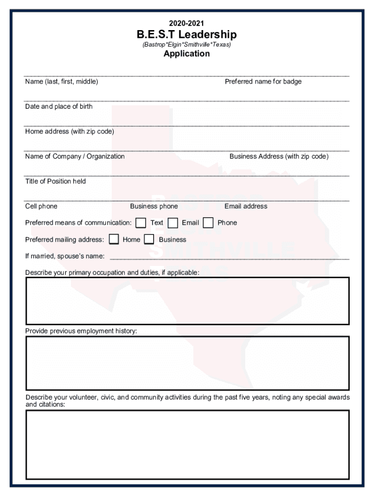 Develop Connect ImpactBECOME A LEADER IN YOUR COMMUNITY AND BEYOND!PARTICIPATE IN THE 20202021B. E.S.T. LEADERSHIP PROGRAM! The B.E.S.T Leadership Program was created in 2004 as a means to cultivate
