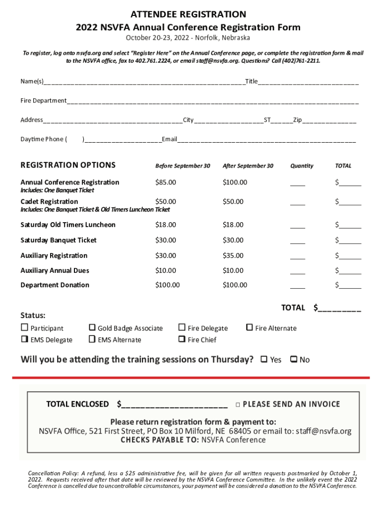Get the free Nebraska State Volunteer Firefighters Association Annual Conference