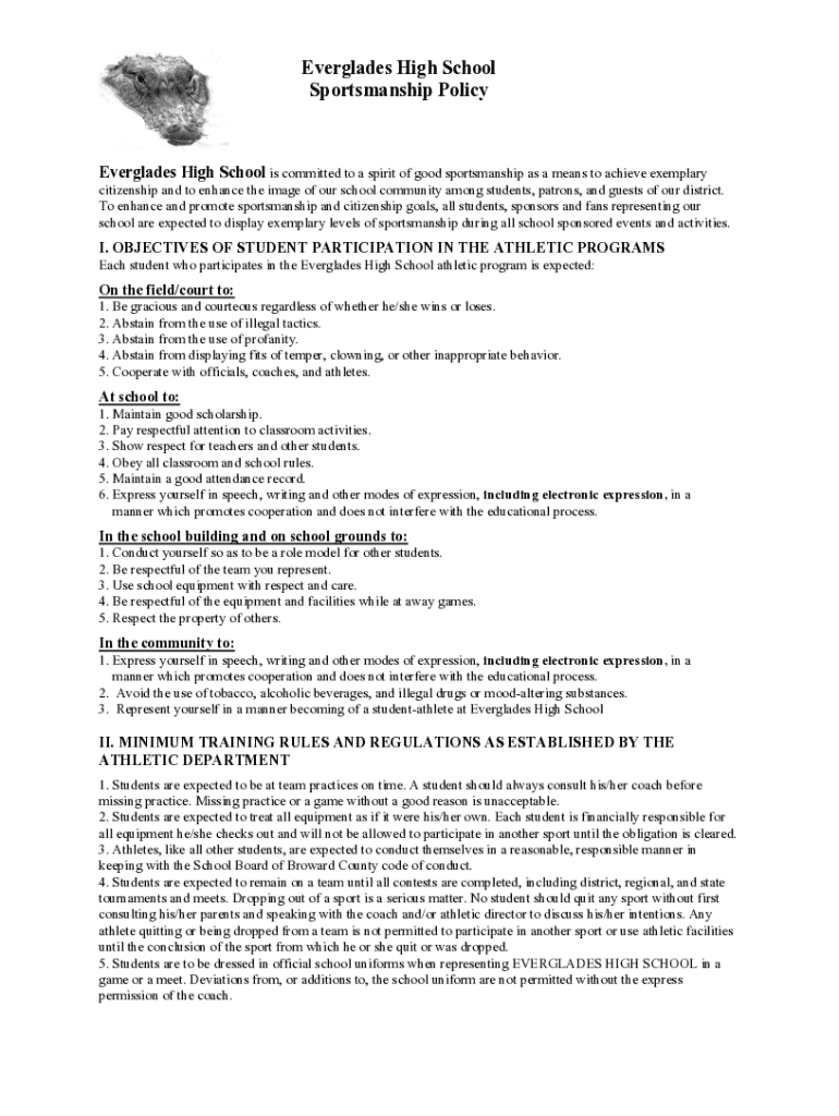 Everglades High School Sportsmanship Policy Everglades High School is committed to a spirit of good sportsmanship as a means to achieve exemplary citizenship and to enhance the image of our school